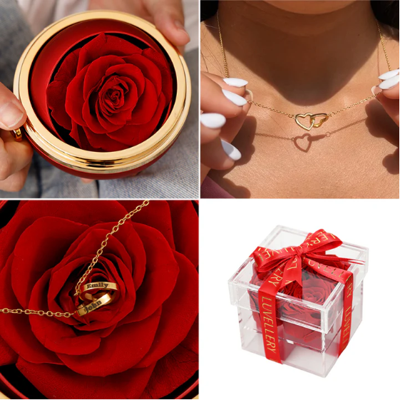Experience the moment she discovers the hidden personalized necklace in the box – the engraving with your names makes this gift something unique and unforgettable.